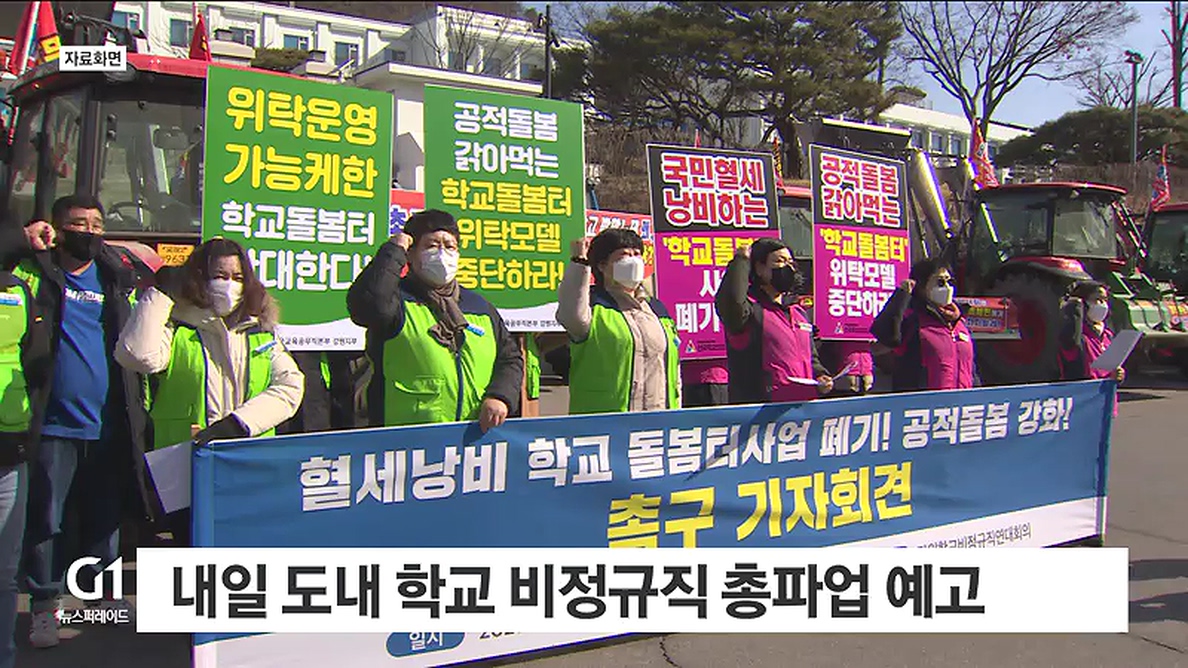 도내 학교 비정규직 노동자 2천여명이 내일 총파업을 예고하면서 급식과 돌봄 대란이 우려되고 있습니다.
