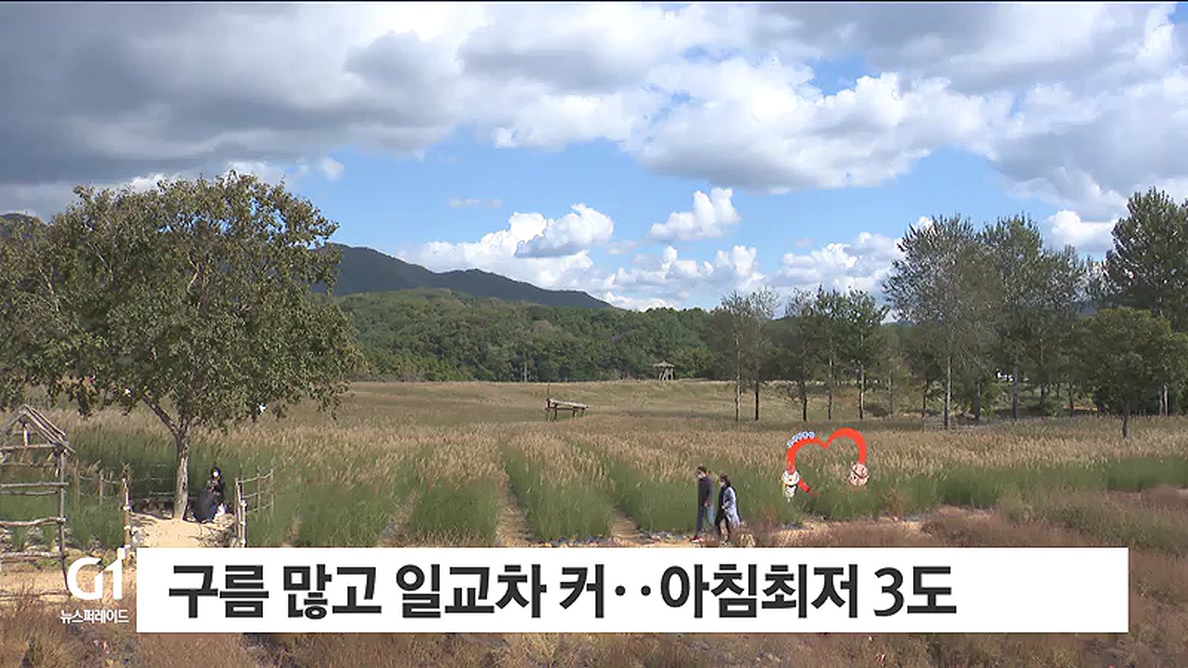 구름 많고 일교차 커..아침최저 3도