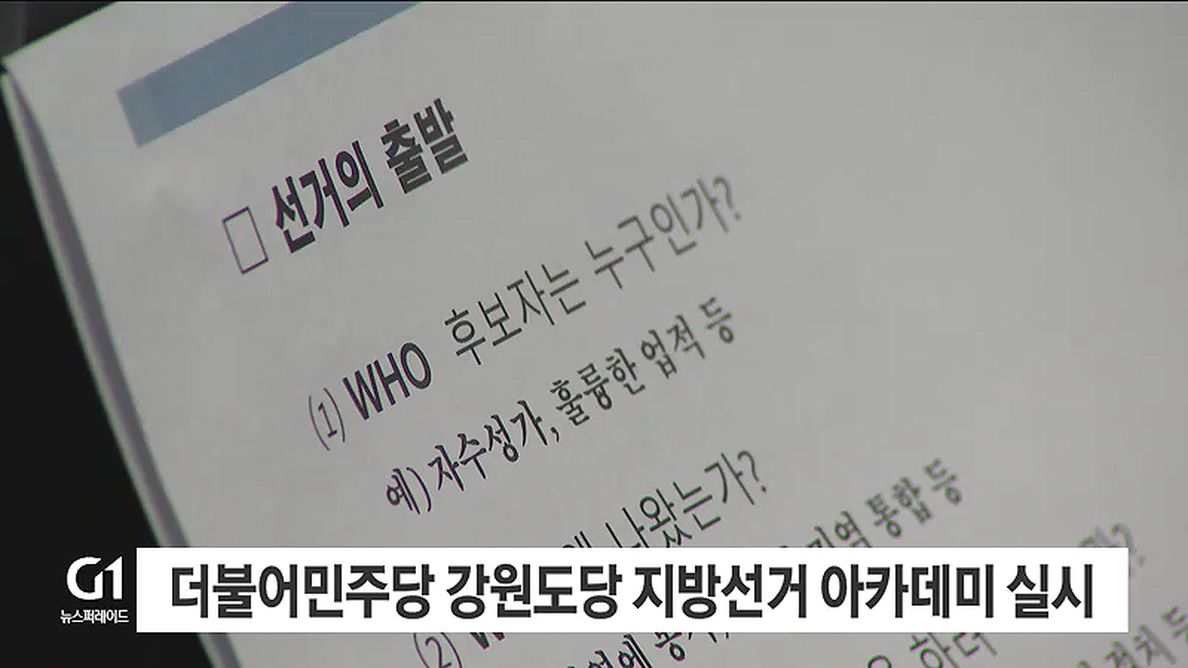 내년 제8회 전국동시지방선거 입후보예정자 실전 역량 강화와 선거 실무 교육을 통한 정치신인 발굴을 위해 개최하는 이번 지방선거 아카데미는 오늘 강릉을 시작으로 18일 원주, 25일에는 춘천에서 권역별로 진행됩니다.