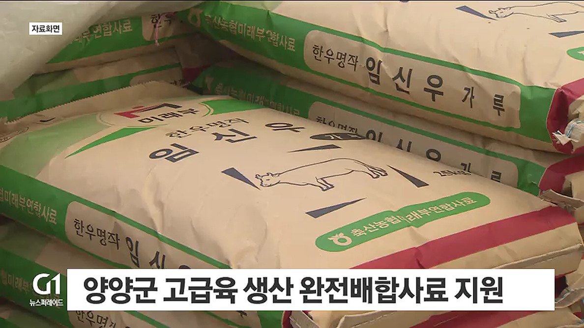 양양군이 우량한우 생산과 축산농가 경영비 절감을 위해 완전배합사료 구입비를 지원합니다.