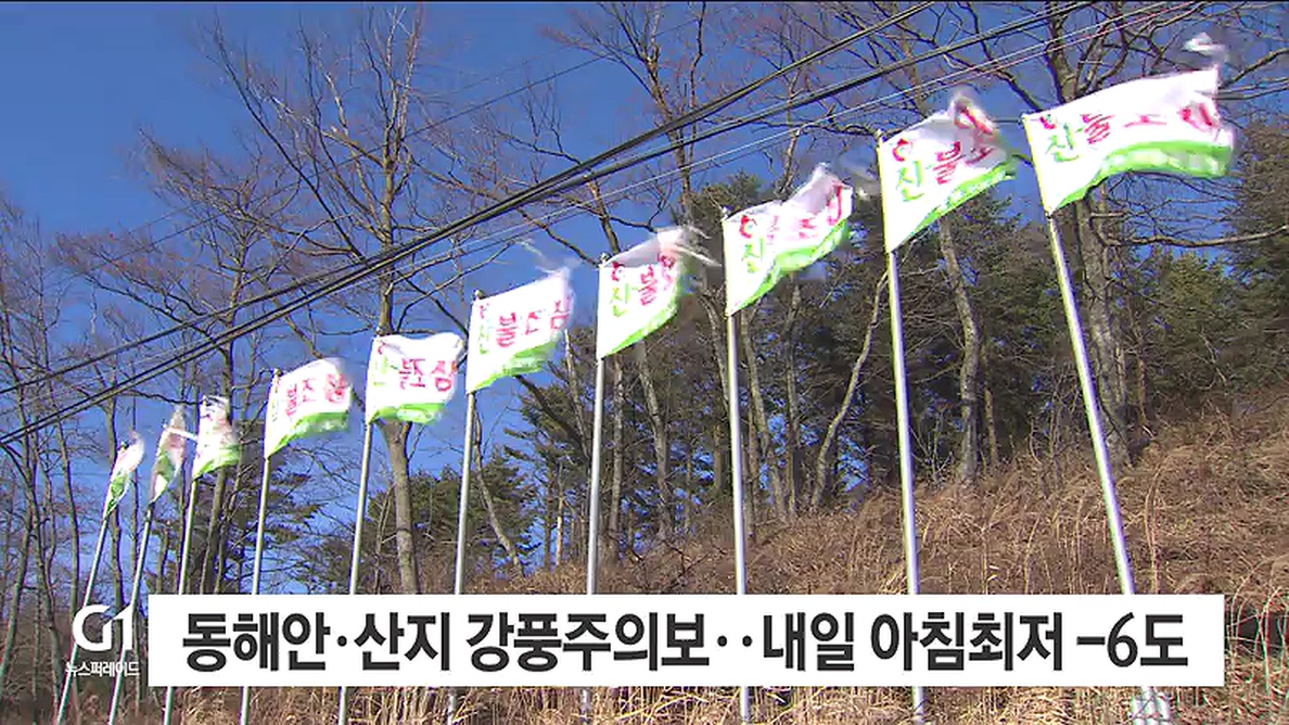 동해안과 산간지역, 태백·정선에 강풍주의보가 내려진 가운데, 내일 강원도는 영하권의 추위를 보이겠습니다.