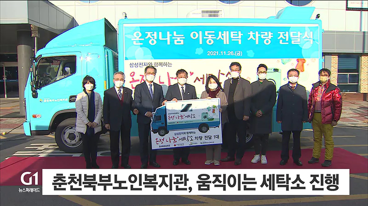 춘천북부노인복지관은 오늘(26일) 지역 내 홀로 거주하거나 거동이 불편한 어르신에게 이동세탁 서비스를 제공하는, 움직이는 세탁소 '이동차량 전달식'을 진행했습니다.