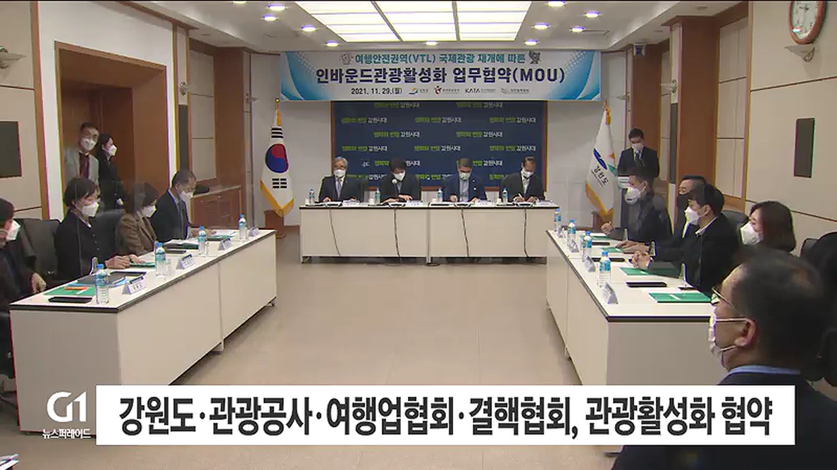 강원도와 한국관광공사, 한국여행업협회, 대한결핵협회는 '위드코로나 국제관광 재개'에 따른 인바운드관광 활성화를 위한 업무협약을 체결했습니다.