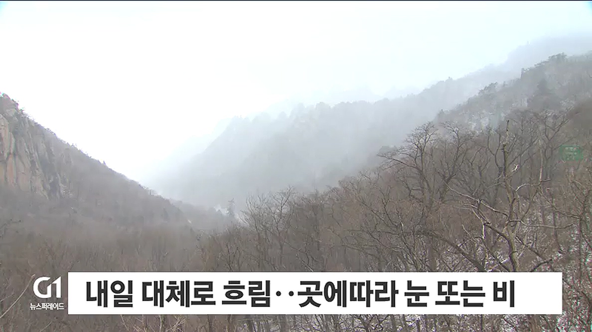 내일 대체로 흐림..곳에따라 눈 또는 비