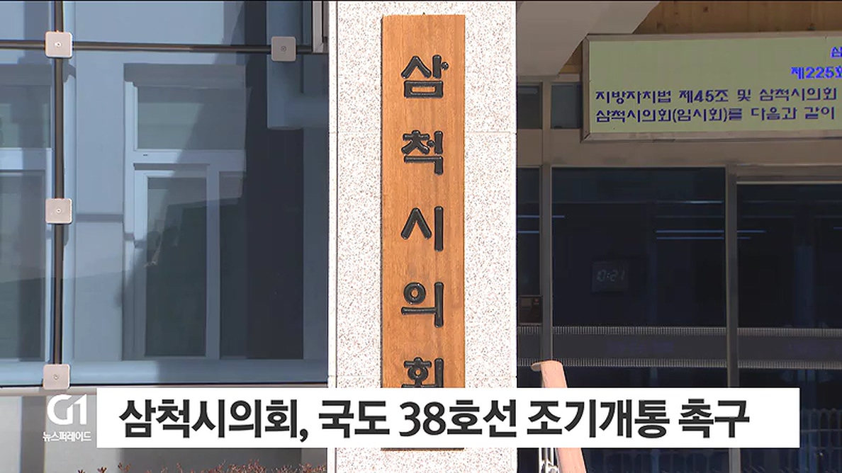 삼척시의회 의원들은 건의문을 내고 14년째 국도 38호선 확포장 공사가 완공되지 못하고 있고 미개통 구간은 수년째 방치돼 있다며,