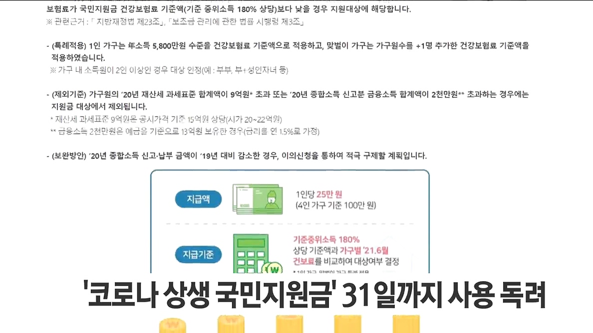 강원도는 '코로나 상생 국민지원금' 사용 마감일인 오는 31일까지 잔액을 사용할 수 있도록 일선 주민센터와 이·통장 회의 등을 통해 적극 홍보하기로 했습니다.