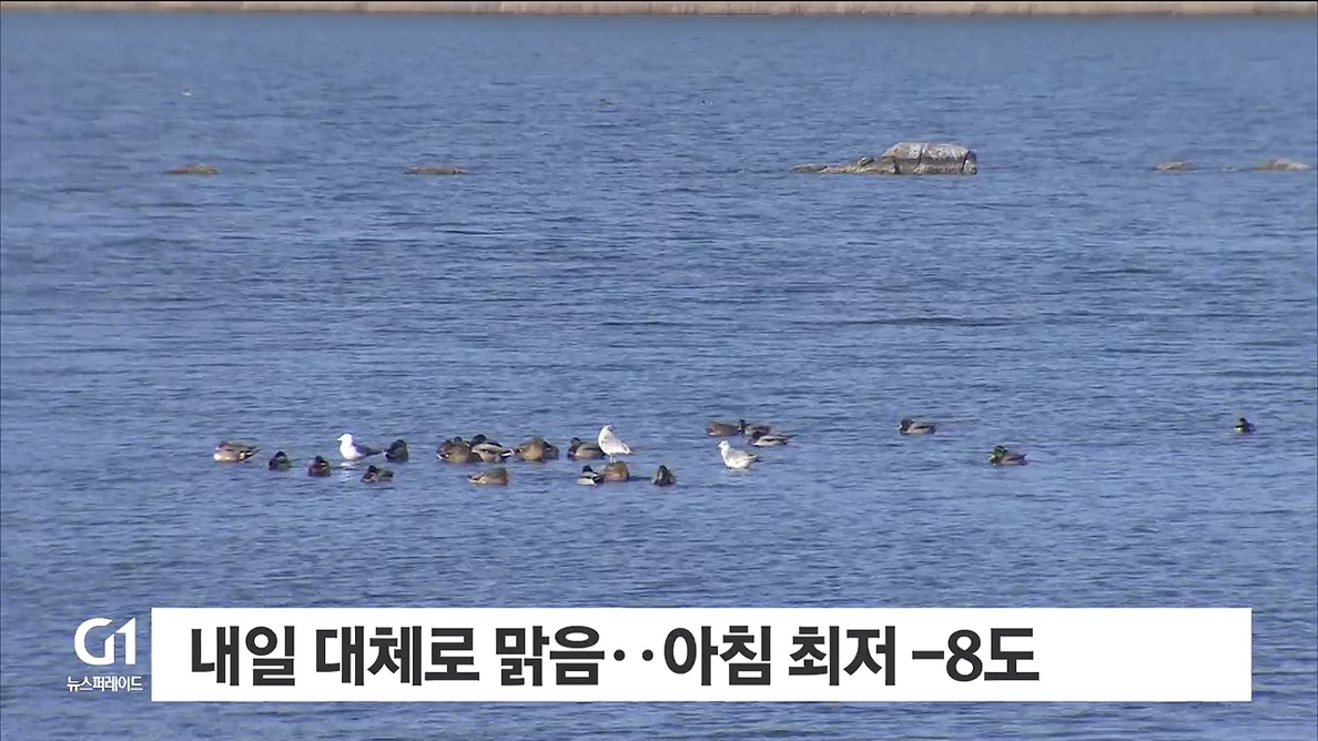 아침 최저기온은 영하 8도에서 영상 3도, 낮 최고기온은 영서권이 6도에서 8도, 영동권은 7도에서 10도의 분포를 보이겠습니다.