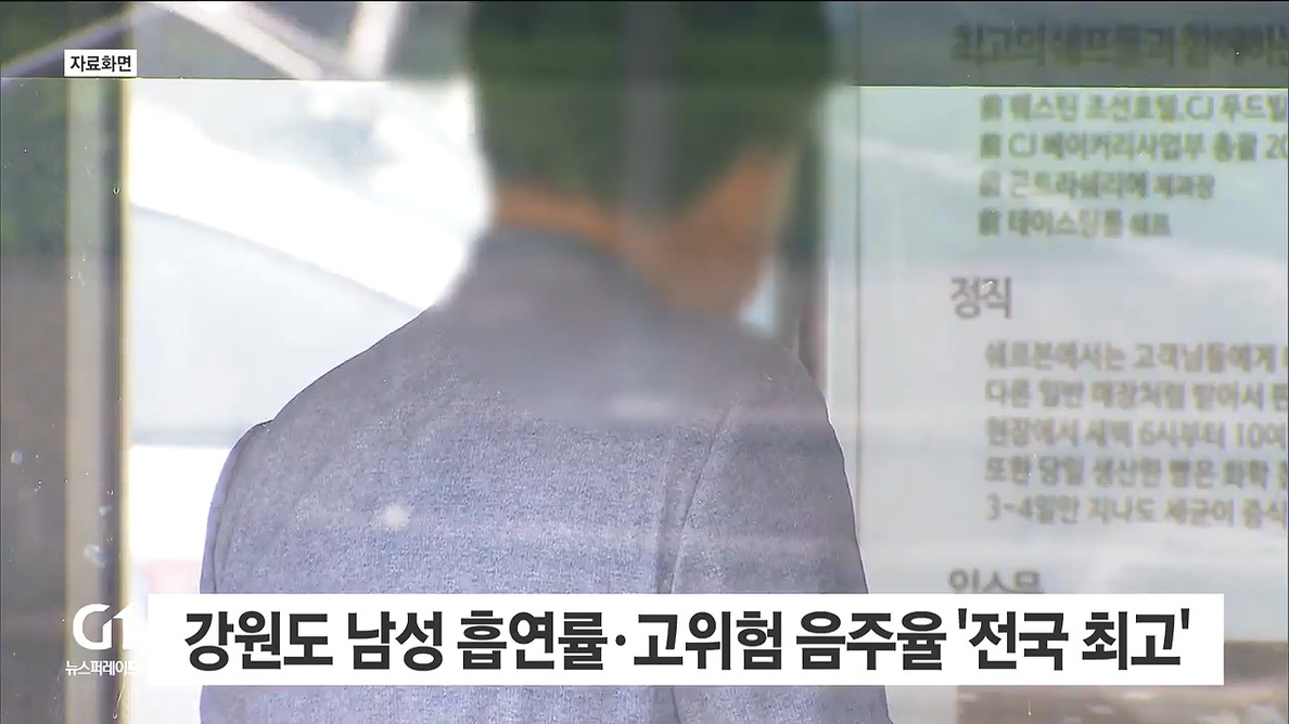 질병관리청에 따르면, 지난해 강원도 성인 남성의 흡연율은 40.9%, 고위험 음주율은 14.3%를 기록해 전국에서 가장 높았습니다.