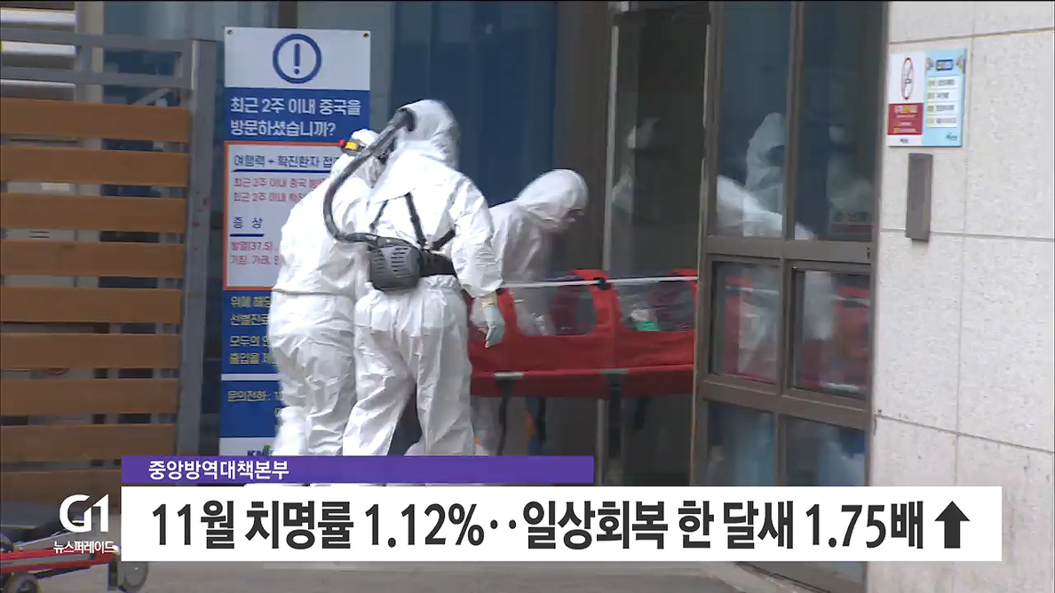 방대본에 따르면, 11월 치명률은 1.12%로, 한 달 전 0.64%보다 2배 가까이 증가했습니다.