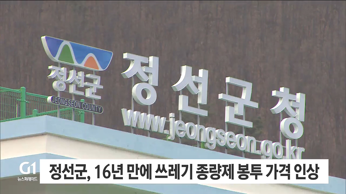 정선군, 16년만에 쓰레기 종량제 봉투 가격 인상