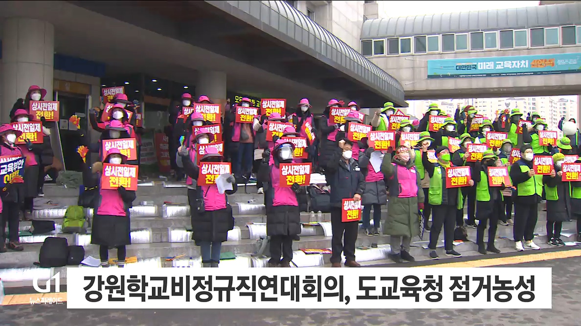 처우 개선 등을 요구하며 파업을 이어오던 강원학교비정규직연대회의는 오늘(24일) '5대 현안'을 해결해 달라며 도교육청 별관을 기습 점거했습니다.