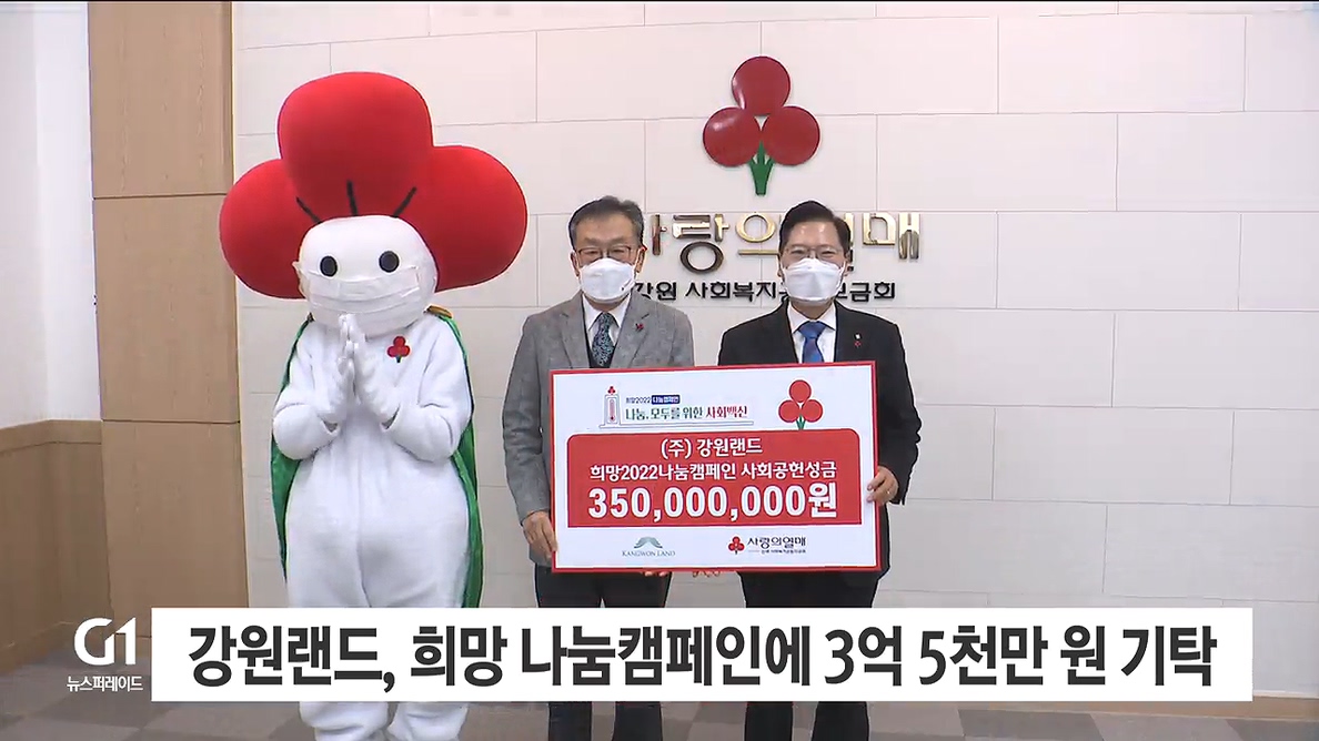 강원랜드가 오늘(27일) '희망2022 나눔캠페인'에 참여해 강원도사회복지공동모금회에 성금 3억 5천만 원을 기탁했습니다.