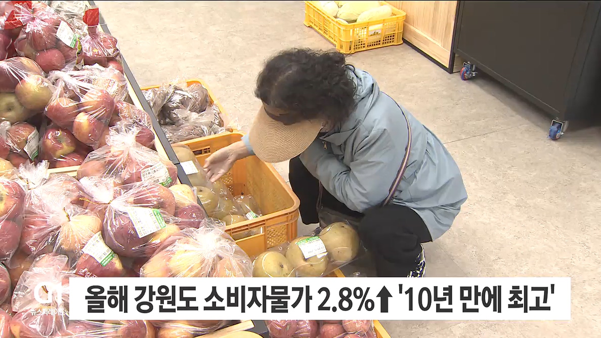 올해 강원도 소비자물가지수가 지난 2011년 이후 10년 만에 가장 큰 폭으로 상승한 것으로 나타났습니다.