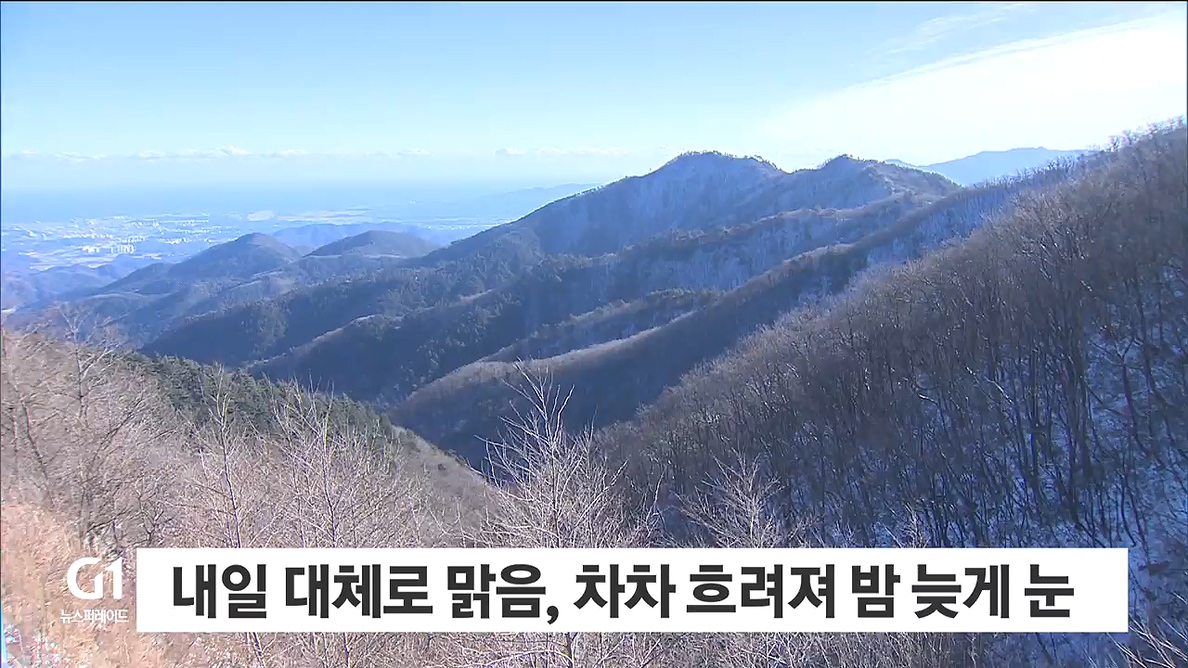강원도는 내일(4일) 대체로 맑겠고, 오후부터는 내륙지역과 산지를 중심으로 차차 흐려져 밤에는 눈발이 날리는 곳이 있겠습니다.