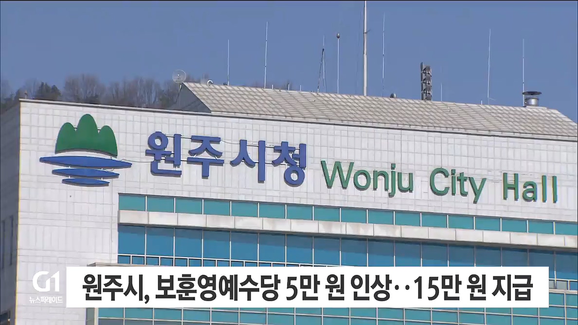 원주시는 올해부터 참전유공자 등 보훈대상자들에게 10만원씩 지급되던 보훈영예수당을 15만원으로 인상해 지급한다고 밝혔습니다.