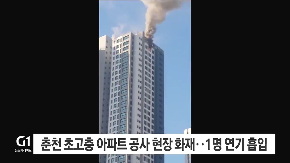 춘천 초고층 아파트 공사 현장 화재..1명 연기 흡입