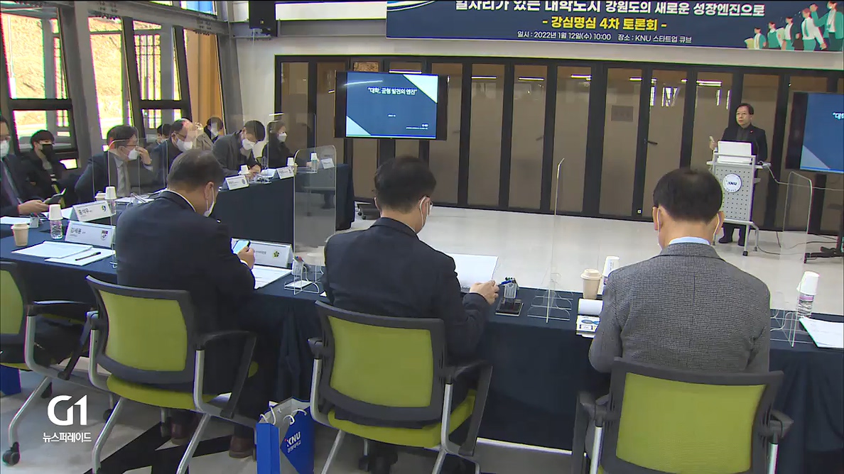 "(미국,중국사례를 보면)교육과 기업일자리와 주거가 함께 해결되다 보니까, 좋은 미래도시가 탄생하고 있습니다. 이제 강원도에 있는 15개 대학도 하나의 특성을 갖고 거듭 새로운 도전을 해서."