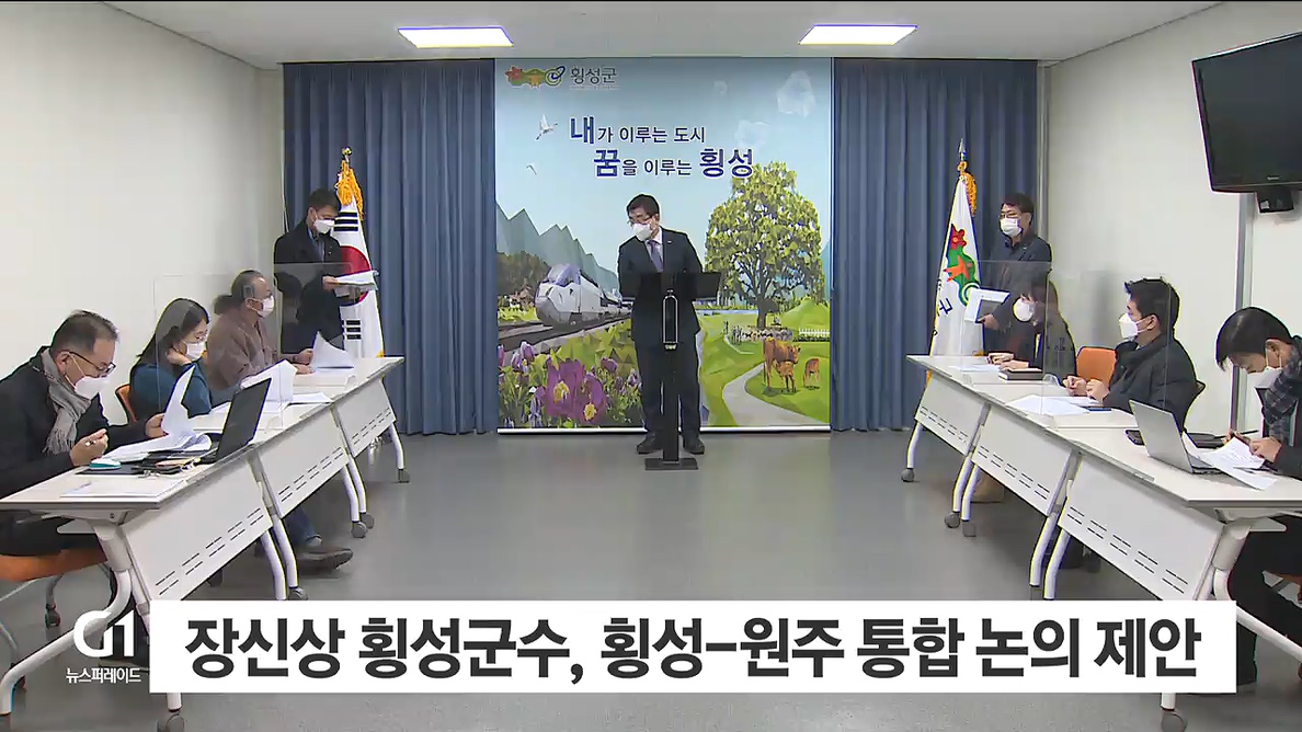 장신상 군수는 오늘 횡성군청에서 기자회견을 열고, "원주 공항 활성화와 상수원보호구역 해제, 군용기 소음피해 등의 지역 현안을 해결하기 위해선 원주시와 공동 협력이 반드시 필요하다며" 횡성-원주 통합을 제안했습니다.