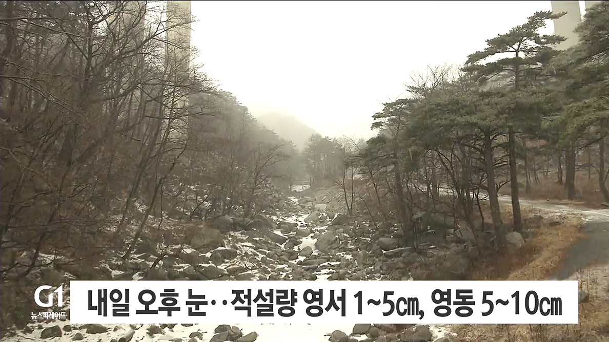 내일 오후 눈‥적설량 영서 1~5cm, 영동 5~10cm