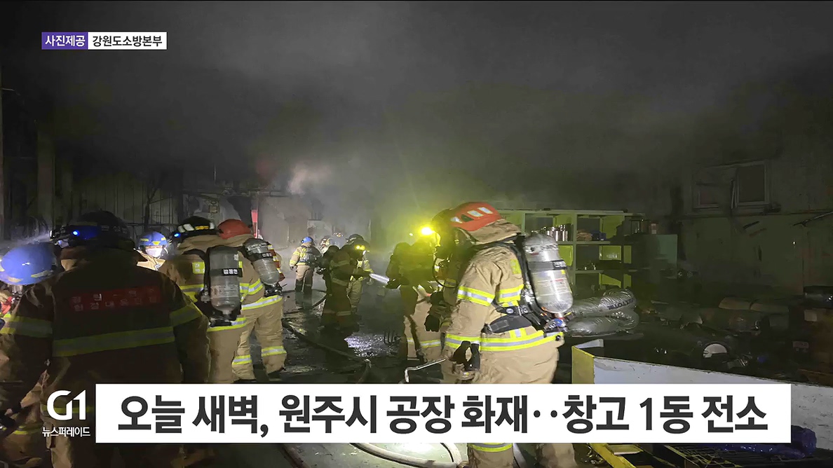 오늘 새벽, 원주시 공장 화재‥창고 1동 전소