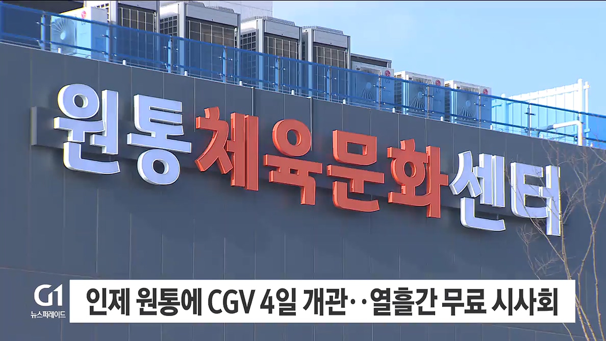 인제군이 오는 4일 원통체육문화센터에 CGV 영화관을 개관하고, 열흘 동안 무료 시사회를 열기로 했습니다.