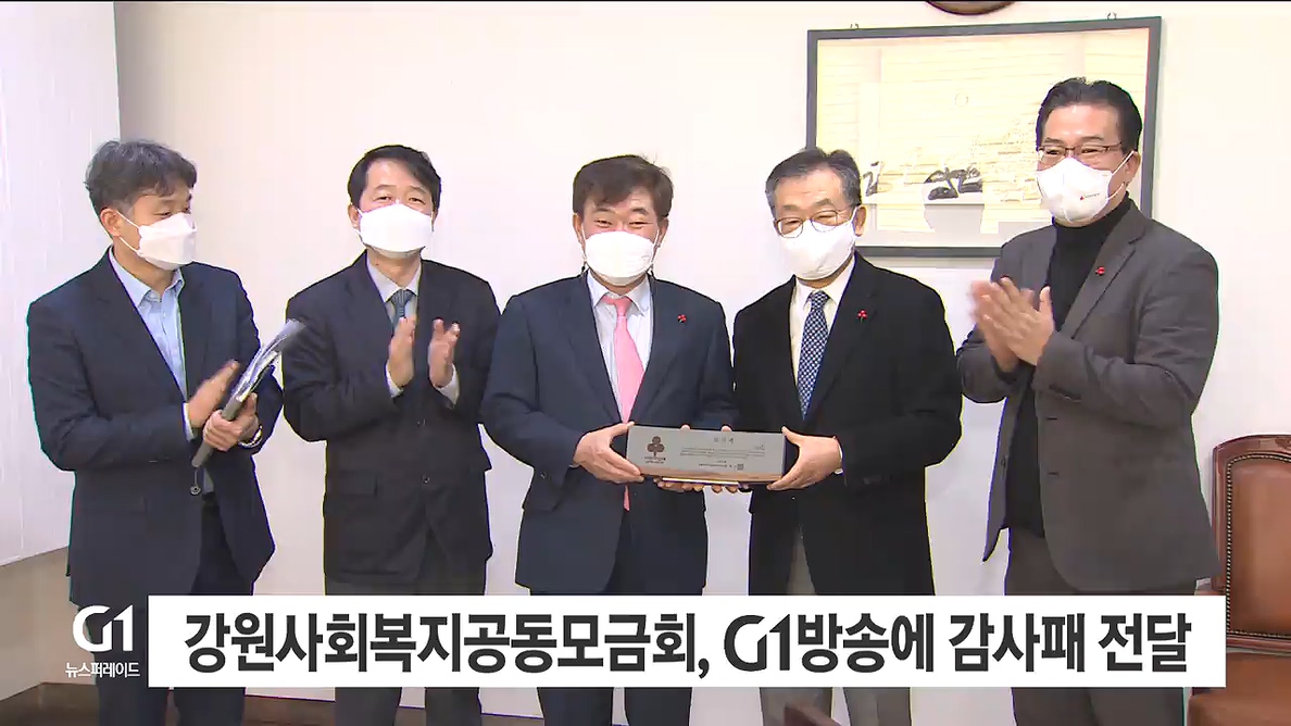 강원사회복지공동모금회는 지역 나눔문화 확산에 기여한 점을 들어 G1방송에 감사패를 전달했습니다.