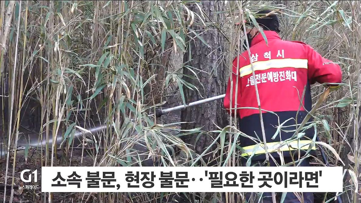 삼척의 경우, 의용소방대와 산불진화대가 투입하기엔 고립 위험성이 높은 급경사가 많기 때문입니다.