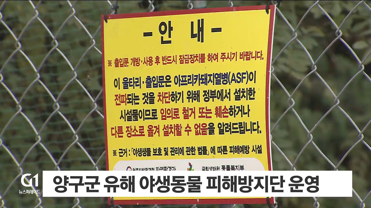 양구군이 농작물 피해 예방과 아프리카돼지열병 차단을 위해 다음달부터 유해 야생동물 피해방지단을 운영합니다.