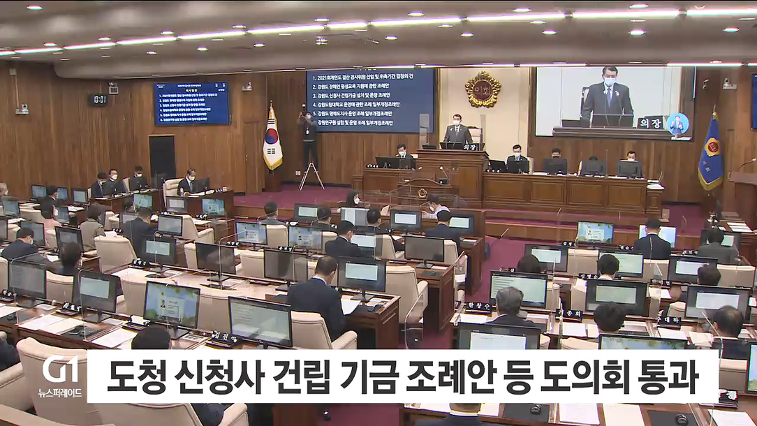 이번 회기에서는 '강원도 지역방송·지역 신문 발전 조례안'을 비롯해 '강원도 신청사 건립 기금 설치 운용 조례안' 등 40건의 안건이 본회의를 거쳐 통과됐습니다.