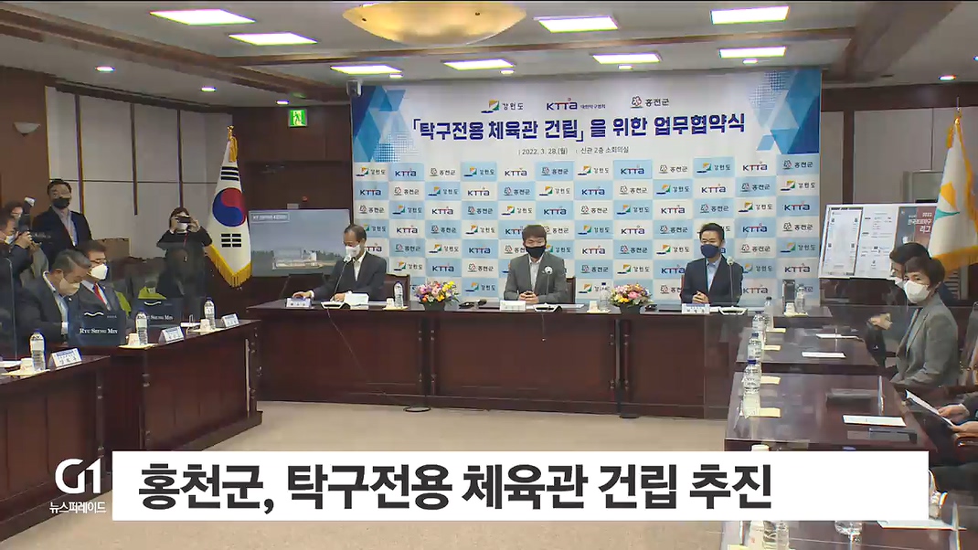 홍천군은 오늘(28일) 강원도청에서 대한탁구협회와 탁구전용 체육관을 건립을 위한 업무협약을 맺었습니다.