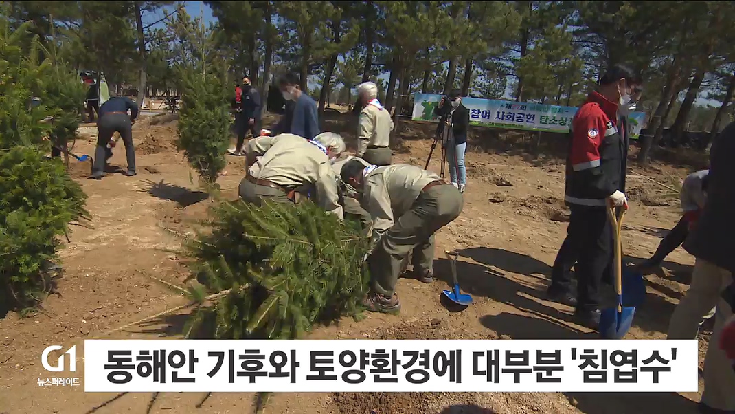 "화강암,풍화토로 형성된 동해안지역의 토양 특성을 보면 일단 산성도가 약산성에 가까워요. 산도가 높고, 게다가 봄 가을 편서풍이 불면서 고온건조한 환경이 쭉 지속되면, 이런 환경에서 잘 자랄 수 있는 나무는 소나무가 대표적입니다."