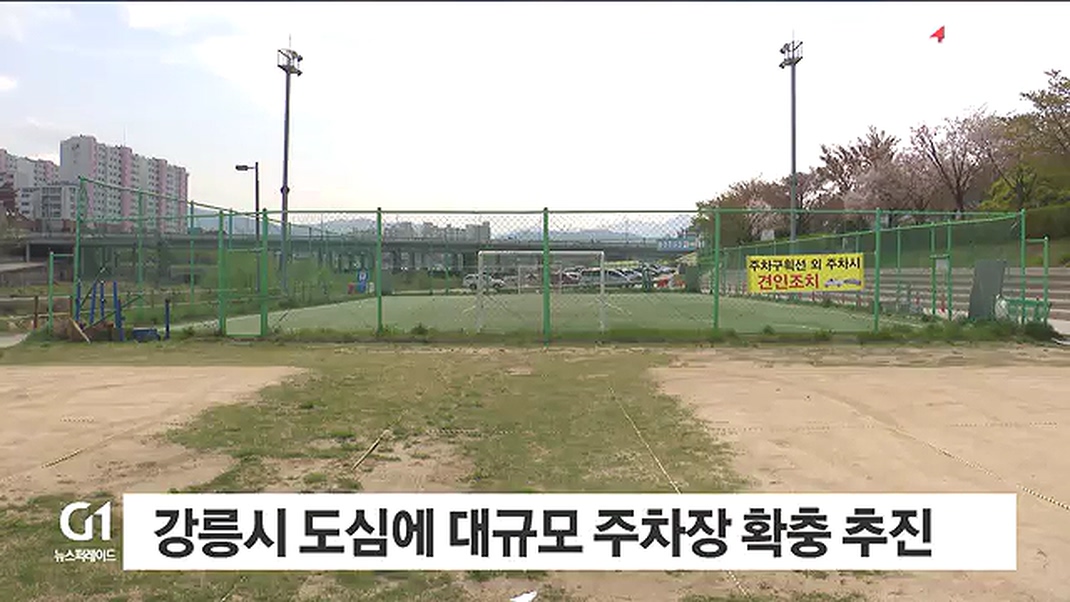 강릉시가 옥천오거리의 원활한 교통 흐름과 주차난 해소를 위해 옥천동 고수부지에 대형 주차장을 설치합니다.