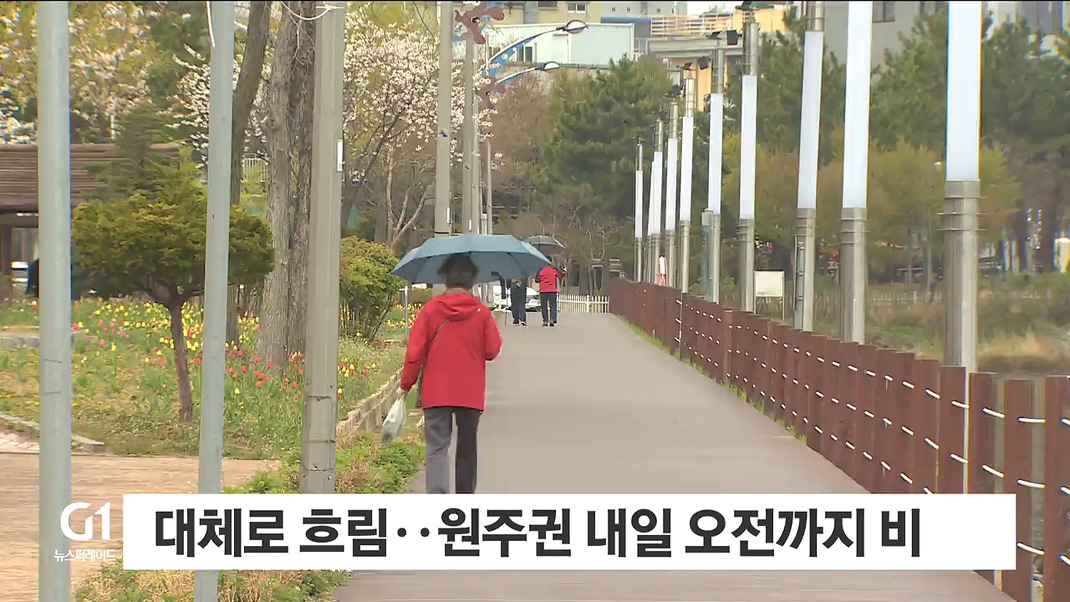 내일 강원도는 대체로 흐리겠고, 원주권을 중심으로 오전까지 비가 내리겠습니다.
