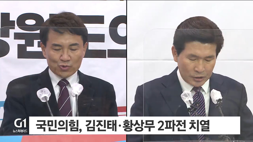 국민의힘은 김진태·황상무 예비후보 간 공천 경쟁이 뜨겁습니다.