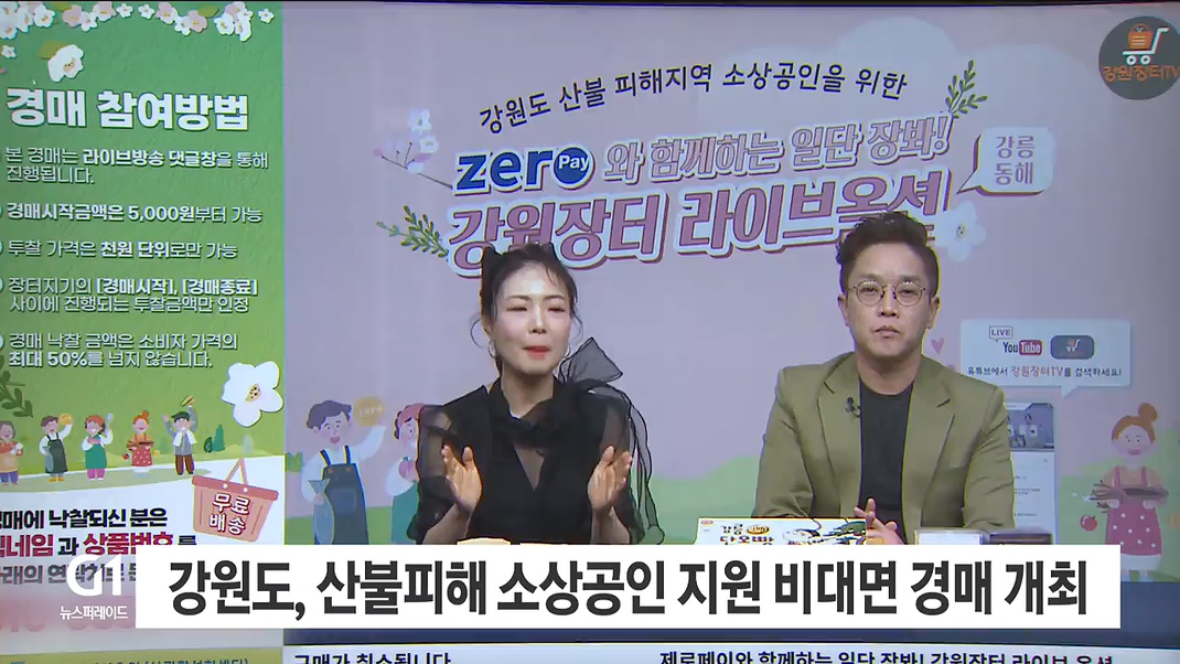 강원도는 산불피해지 소상공인들을 돕기위해 '일단 장봐! 강원장터 라이브커머스 옥션' 비대면 경매를 한다고 밝혔습니다.