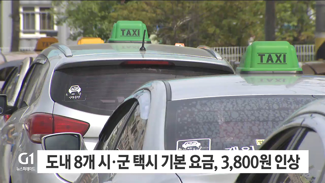도내 8개 시·군 택시 기본 요금, 3,800원 인상