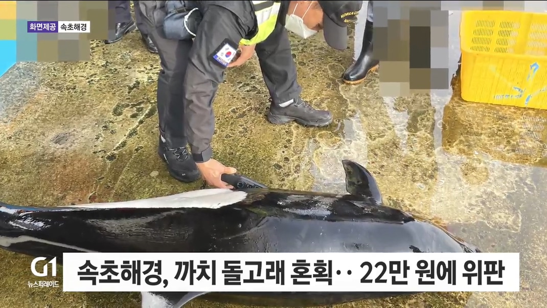 속초해경, 까치 돌고래 혼획.. 22만 원에 위판
