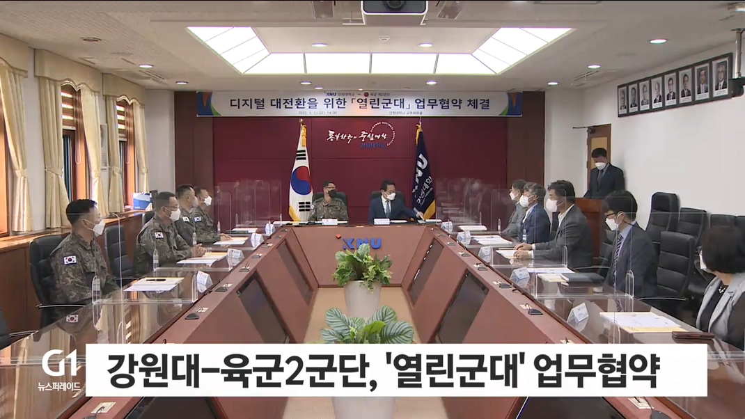 강원대학교와 육군 2군단은 디지털 대전환을 위한 '열린군대' 업무협약을 맺었습니다.