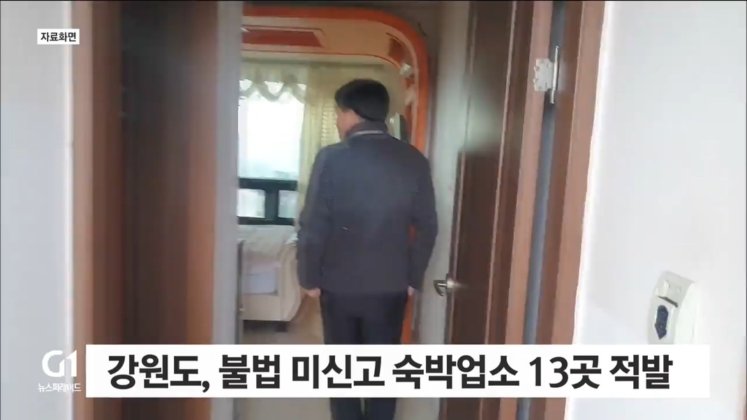 강원도 민생사법팀은 지난 4월부터 지난달 10일까지 춘천과 속초에서 불법 미신고 숙박업소 단속을 벌여 춘천 11곳, 속초 2곳 등 모두 13곳을 적발했다고 밝혔습니다.