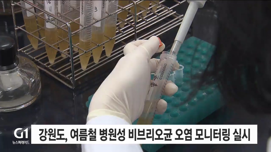 강원도 보건환경연구원은 비브리오균 발생이 급증하는 7월부터 9월까지 동해안 6개 시·군 18개 지점을 선정해 월 2회 모니터링을 실시합니다.