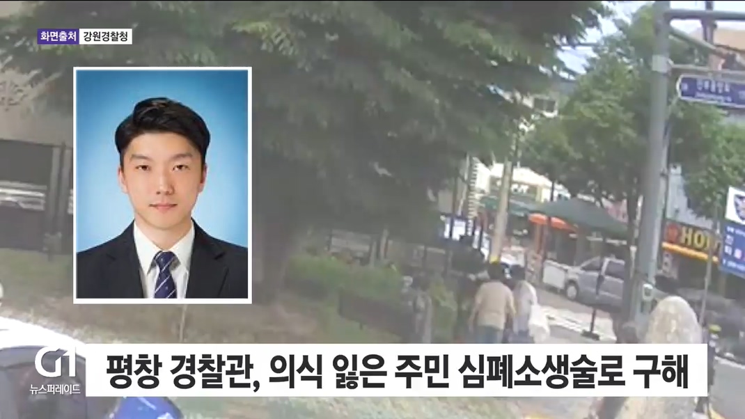 강원경찰청에 따르면, 평창경찰서 진부파출소 소속 민재홍 경장은 어제 오후 2시쯤 파출소 앞에서 의식을 잃고 쓰러진 50대 여성을 발견하고 심폐소생술을 실시했습니다.