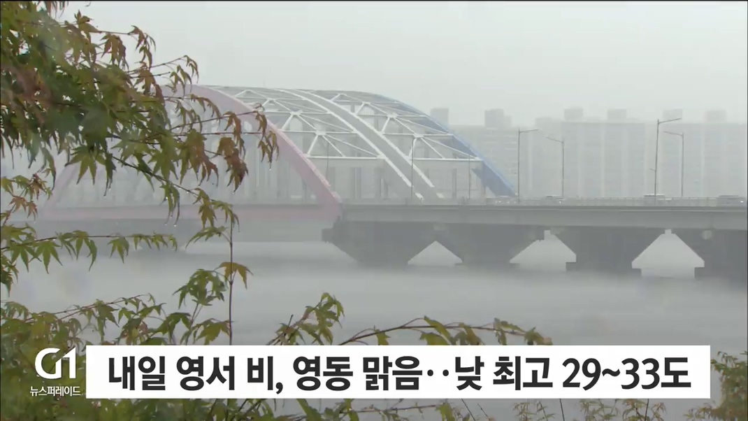 내일(1일) 영서지역은 대체로 흐린 가운데, 곳에 따라 50에서 100mm의 비가 오겠고, 영동지역은 맑겠습니다.