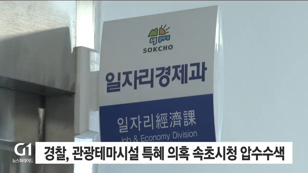 강원경찰청 반부패경제범죄수사대는 오늘 오전 10시부터 속초시 관광과와 일자리경제과 사무실 등을 압수수색했습니다.