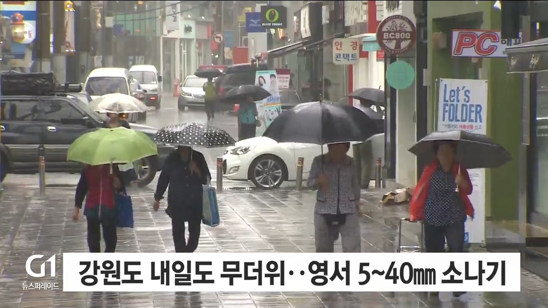 내일 강원도 찜통더위..영서 5~40mm 소나기