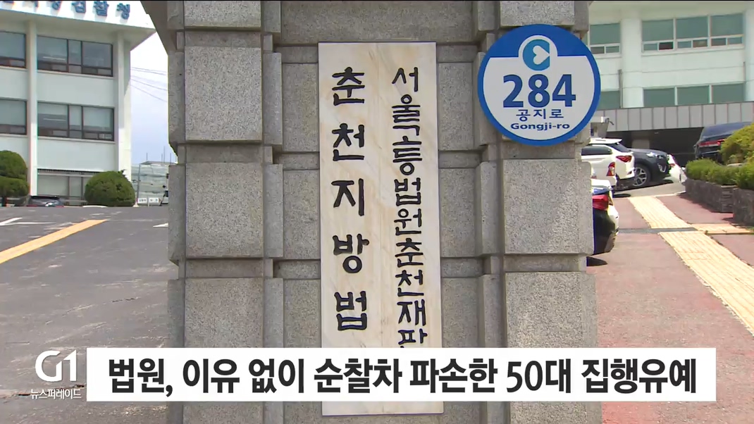 주차된 순찰차를 아무 이유 없이 파손한 50대 남성이 징역형의 집행유예를 선고받았습니다.