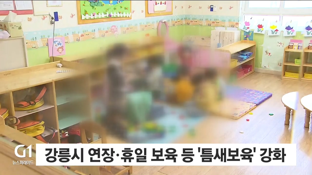 강릉시는 지역 어린이집 92곳은 연장보육, 10곳은 야간연장보육을 실시하고 있고, 휴일과 시간제 보육은 각각 2곳과 4곳에서 운영하고 있다고 밝혔습니다.