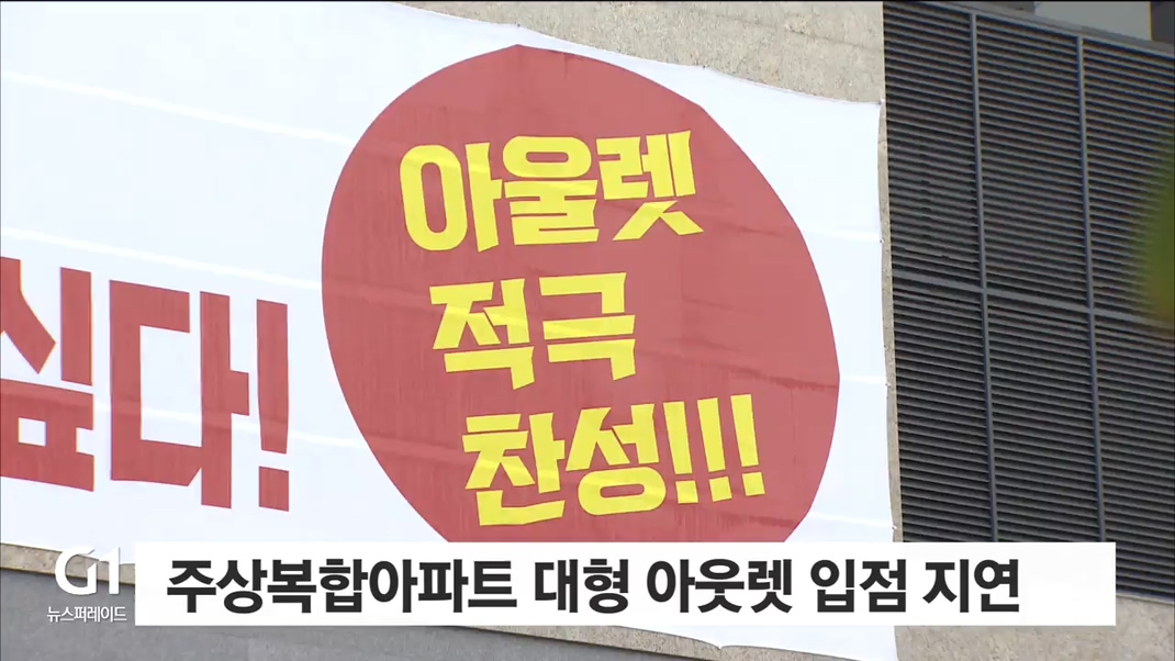 아파트 주변에는 아웃렛 입점을 촉구하는 현수막이 여기저기 게시됐습니다.