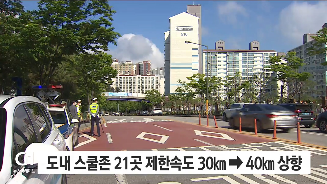 도내 스쿨존 21곳 제한속도 30km -> 40km 상향