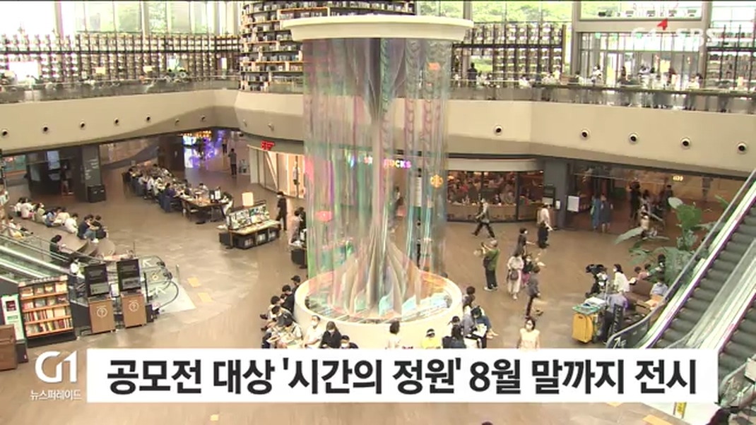 서울 코엑스몰 별마당 도서관에 8미터 높이의 모래시계 모양 조형물이 설치돼 있습니다.