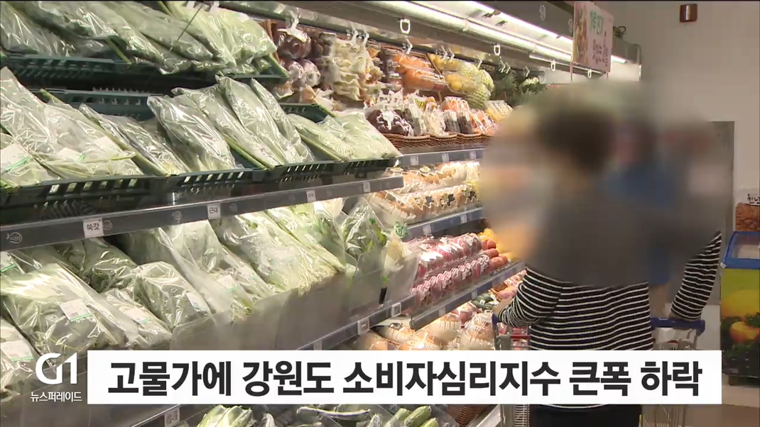 고물가 시대가 계속되면서 강원도 소비자심리지수가 크게 하락한 것으로 나타났습니다.
